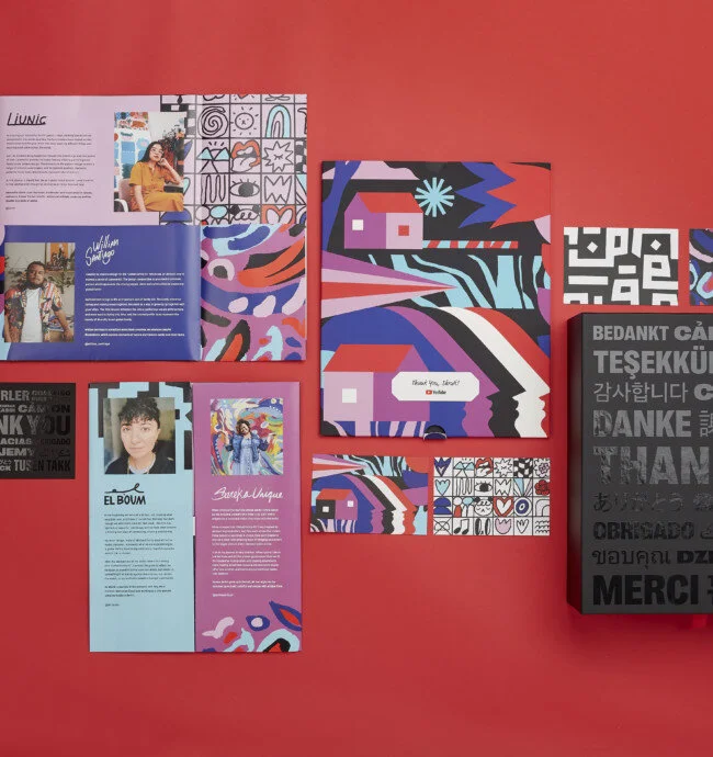 Over the past few years, YouTube has sent end-of-year gifts to thank top-tier creators around the world. In 2020, a particularly challenging year, YouTube wanted to express their gratitude with something truly special. To create the perfect gift, ADVOC8 designed four exclusive versions of the ultimate sweatsuit—the iconic attire of the pandemic era. We collaborated with four talented illustrators from across the globe, each contributing custom designs inspired by the themes of global unity and community.