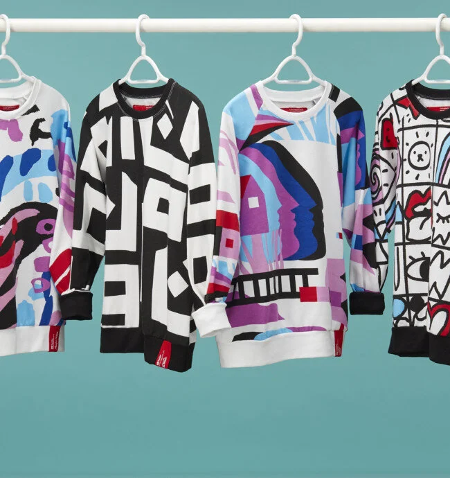 As a designer at ADVOC8, I was responsible for applying the illustrators' artwork to production materials, including the sweatsuits and packaging. I also contributed to the project by designing digital assets and print materials to complement the overall campaign.